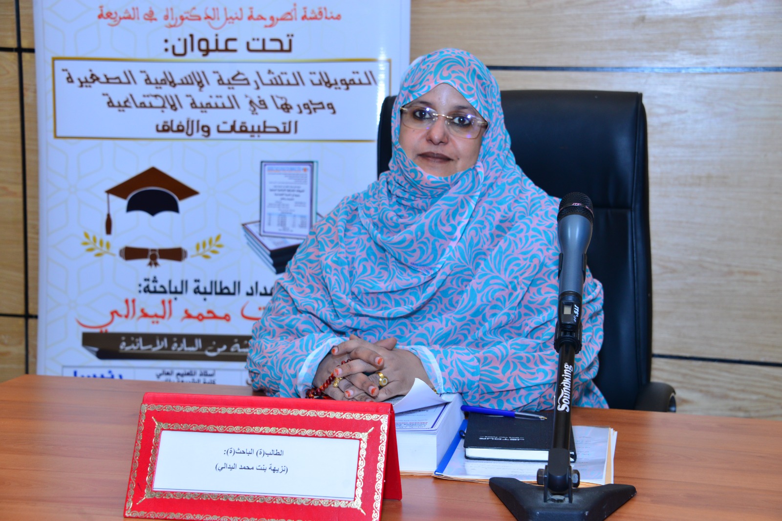 وقد أشادت اللجنة المشرفة بالأطروحة التي قدمتها الباحثة نزيهة الحسن تحت عنوان "التمويلات التشاركية الإسلامية الصغرى ودورها في التنمية الاجتماعية.. التطبيقات والآفاق".